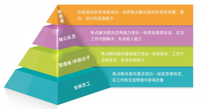 随着焦点解决短程治疗“走出”咨询室,焦点解决就不仅是一项咨询技术了,更是一种方法它广泛地应用于企业、学校、社区、医院、矫治中心、NGO组织、家庭,甚至是两个人之间的互动中。尤其是在企业中,它可以是一种工作方法,推动会议流程,它可以是一种沟通方法,促进部门合作;它也可以是一种思考方法,助力目标达成,它还可以一种解决方法,探索问题的解决之道,.....